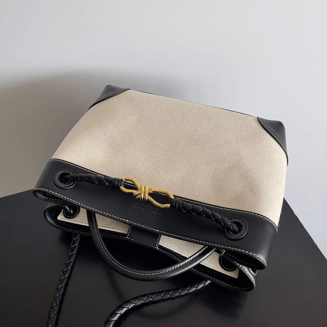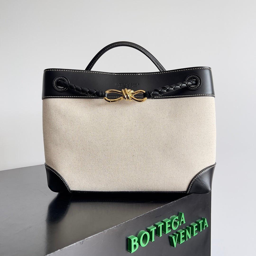 BV Medium Andiamo 32 In Beige Canvas Black Calfskin 209020