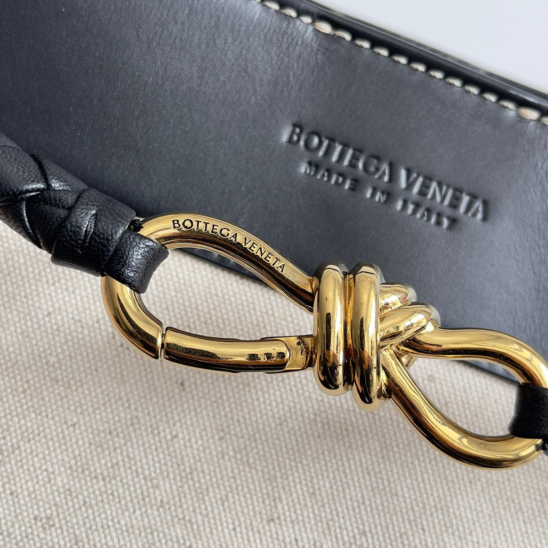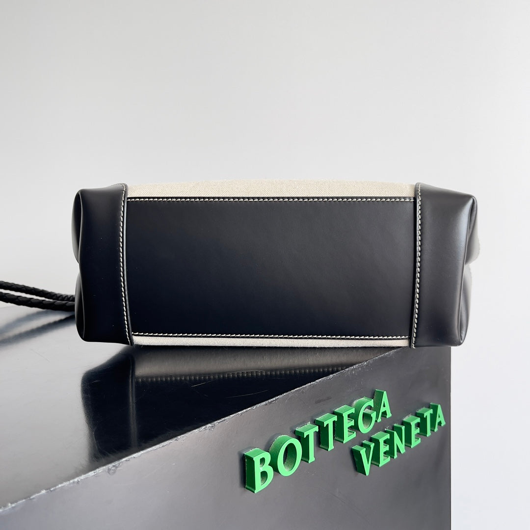 BV Small Andiamo 25 In Beige Canvas Black Calfskin 209015