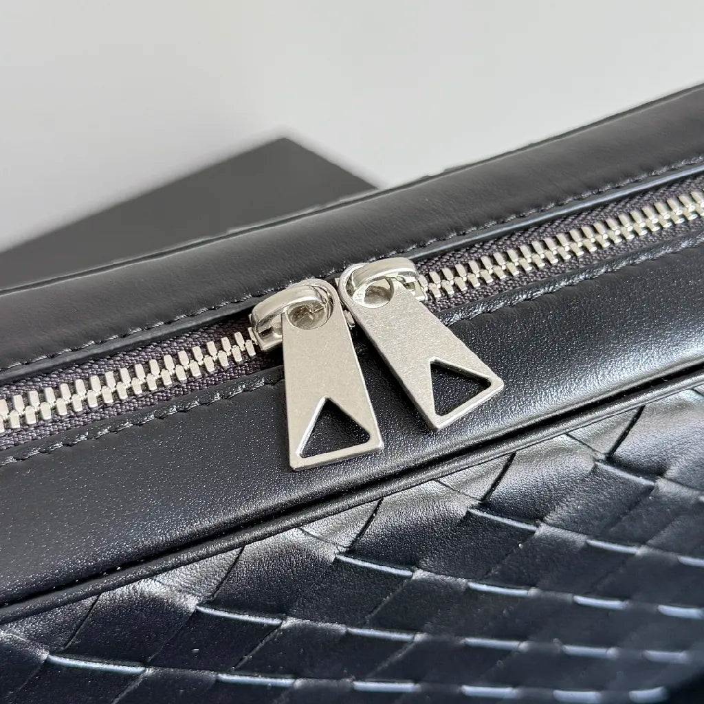 BV 25 Zipped North-South Tote 33.5cm Black Intrecciato Leather