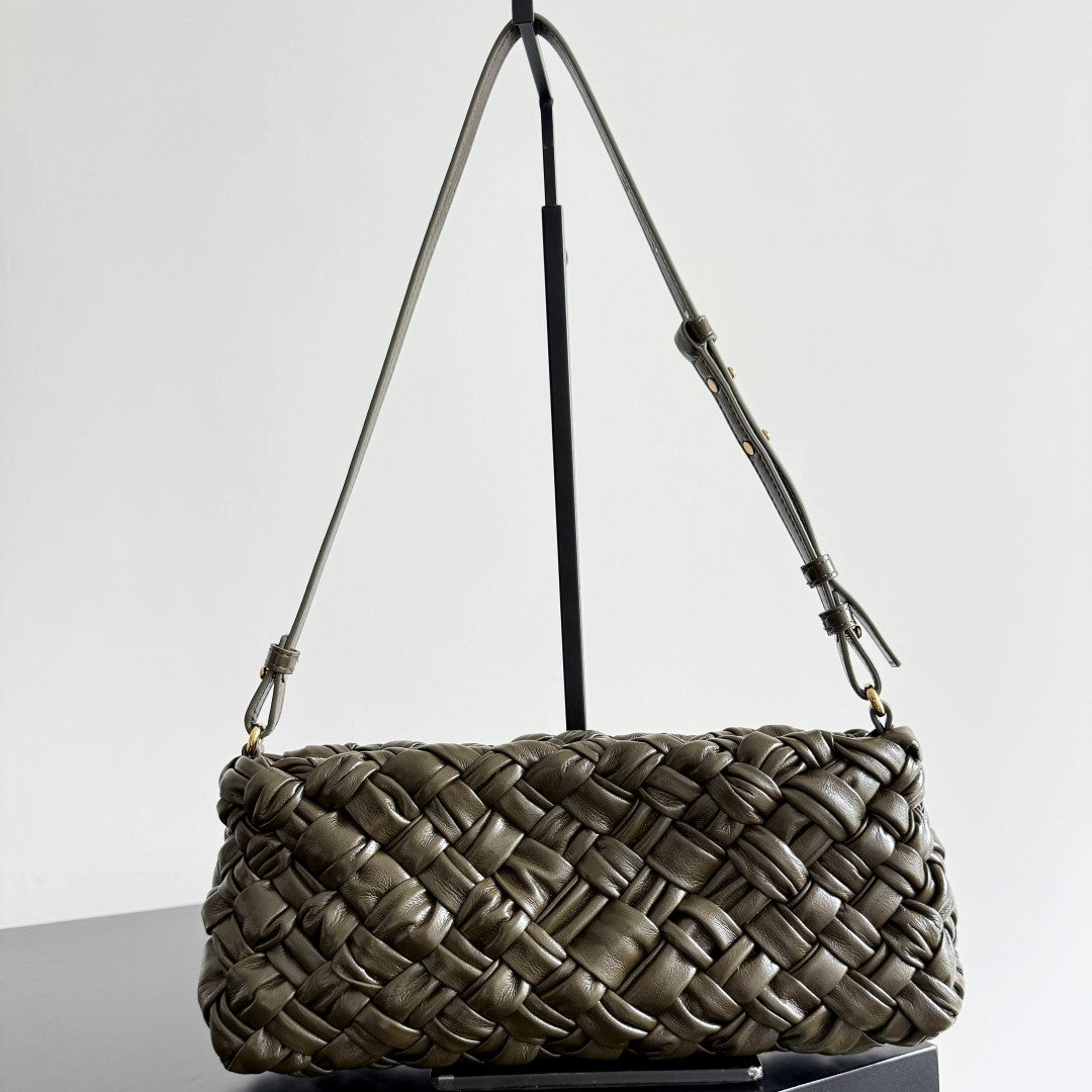 BV Liberta Crossbody Bag Buckle 30cm Olive Green Cowhide