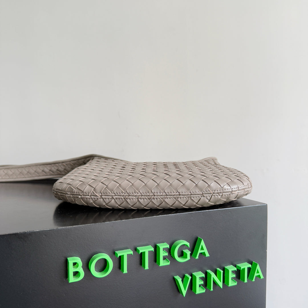 BV Liberta Crossbody Bag Buckle 30cm Silver Gray Cowhide