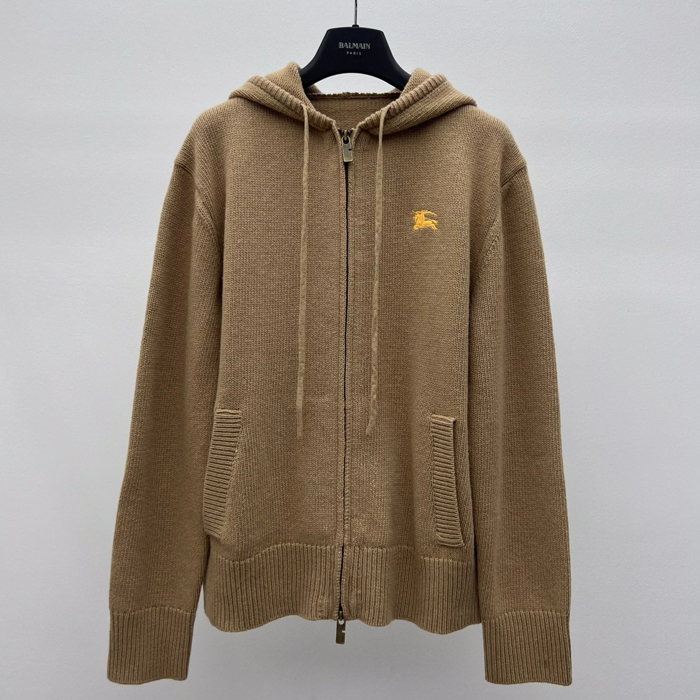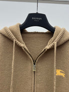 Burberry 25 Zipper-Up Hooded Knit Cardigan Beige Wool Cashmere