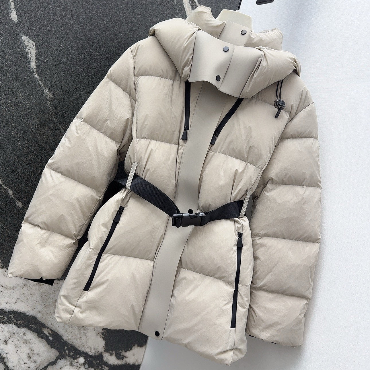 Burberry 25 Hooded Short Down Jacket with Adjustable Waist White Polyester