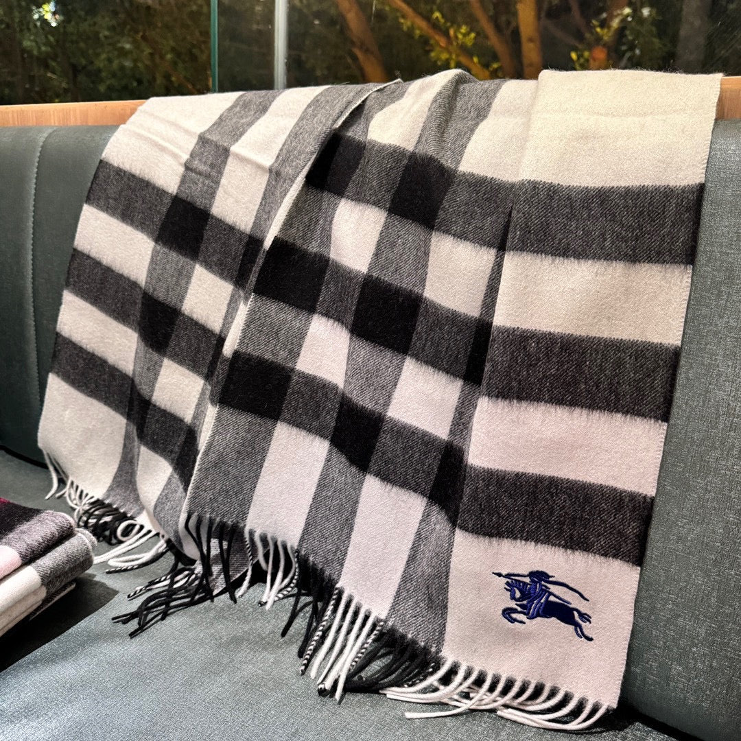 REVERSIBLE CHECK CASHMERE SCARF 180 CM BLACK AND BEIGE 405497