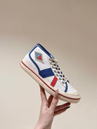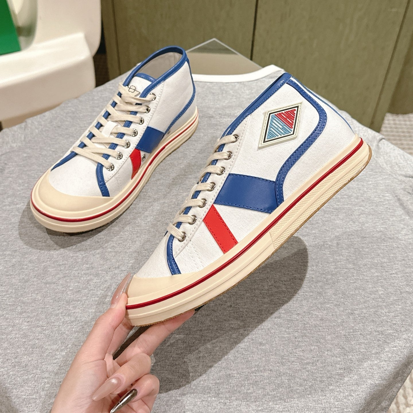 BV Eliot Sneaker White/Blue Cotton Calfskin 446196
