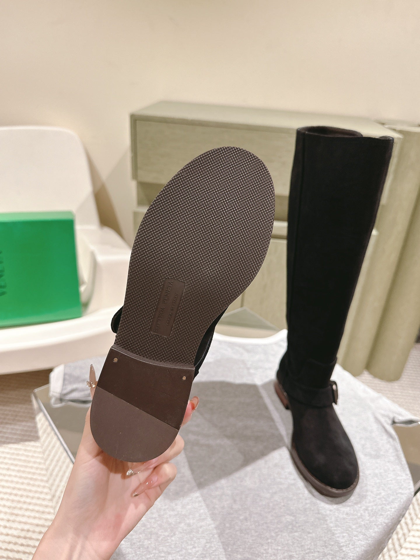 BV Long Boots 30mm Black Suede 446178
