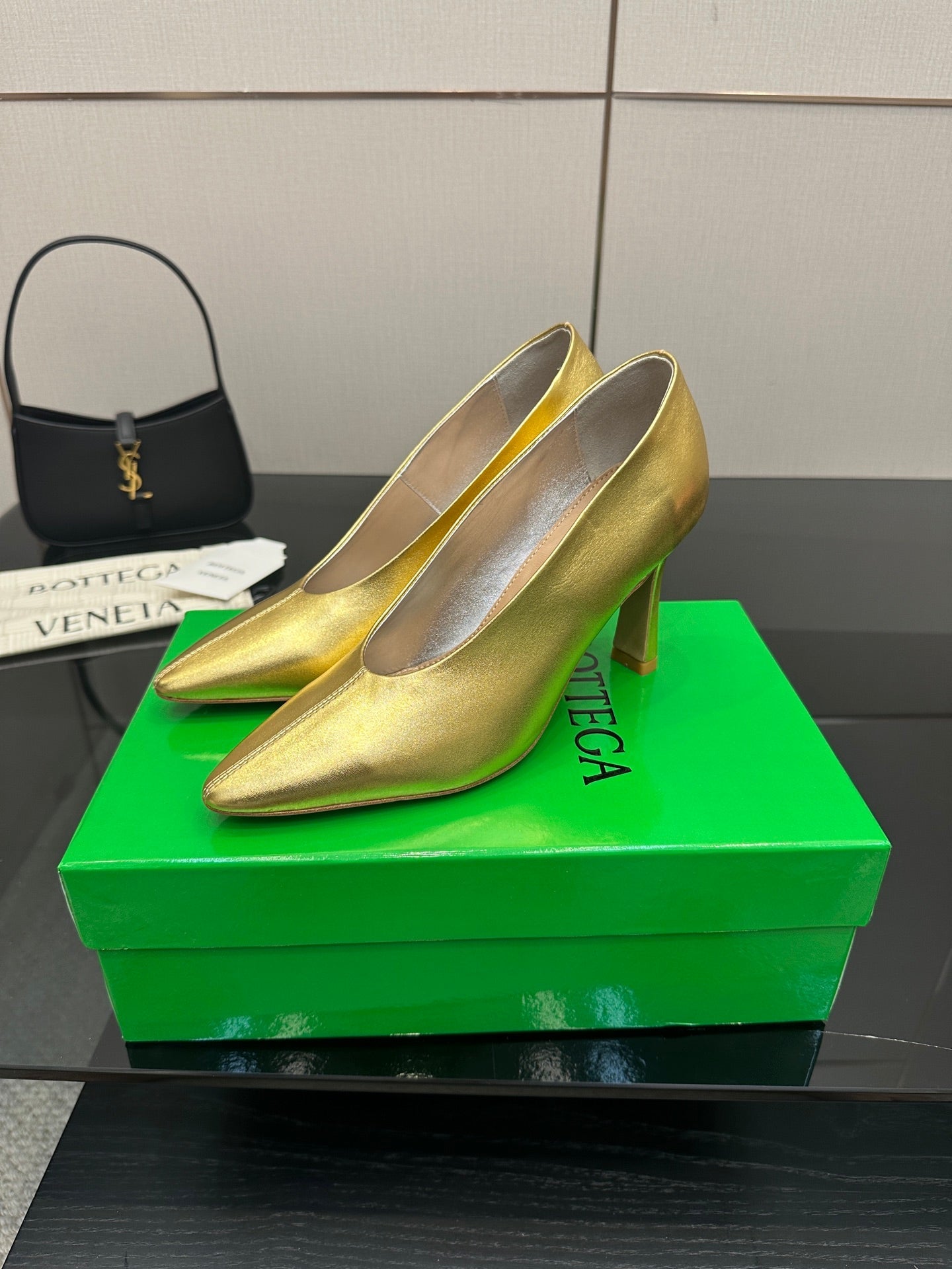 BV Pump 90mm Gold Calfskin 427644