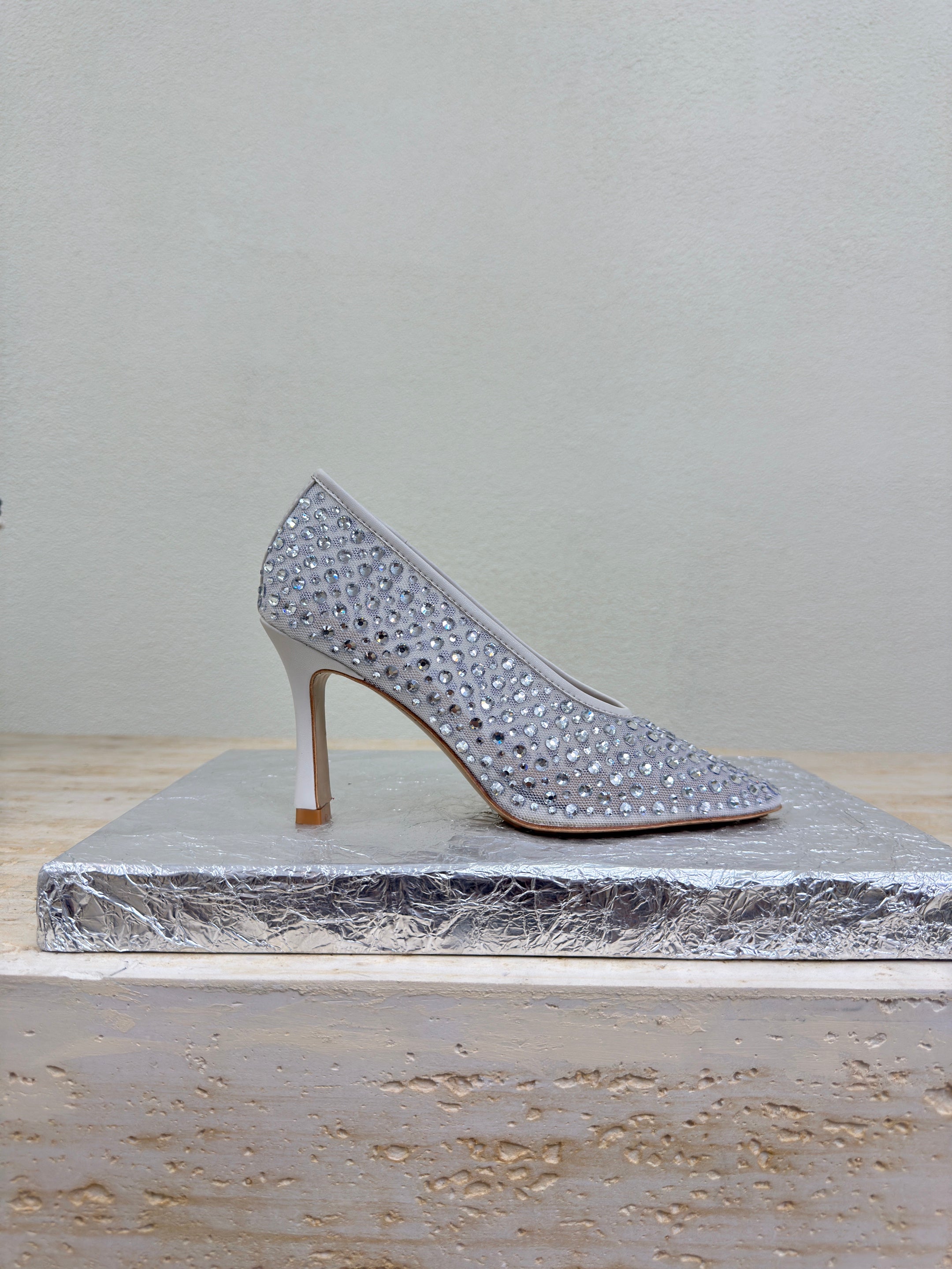 BV Rhinestones Sofia Pump 90mm White Mesh 428481