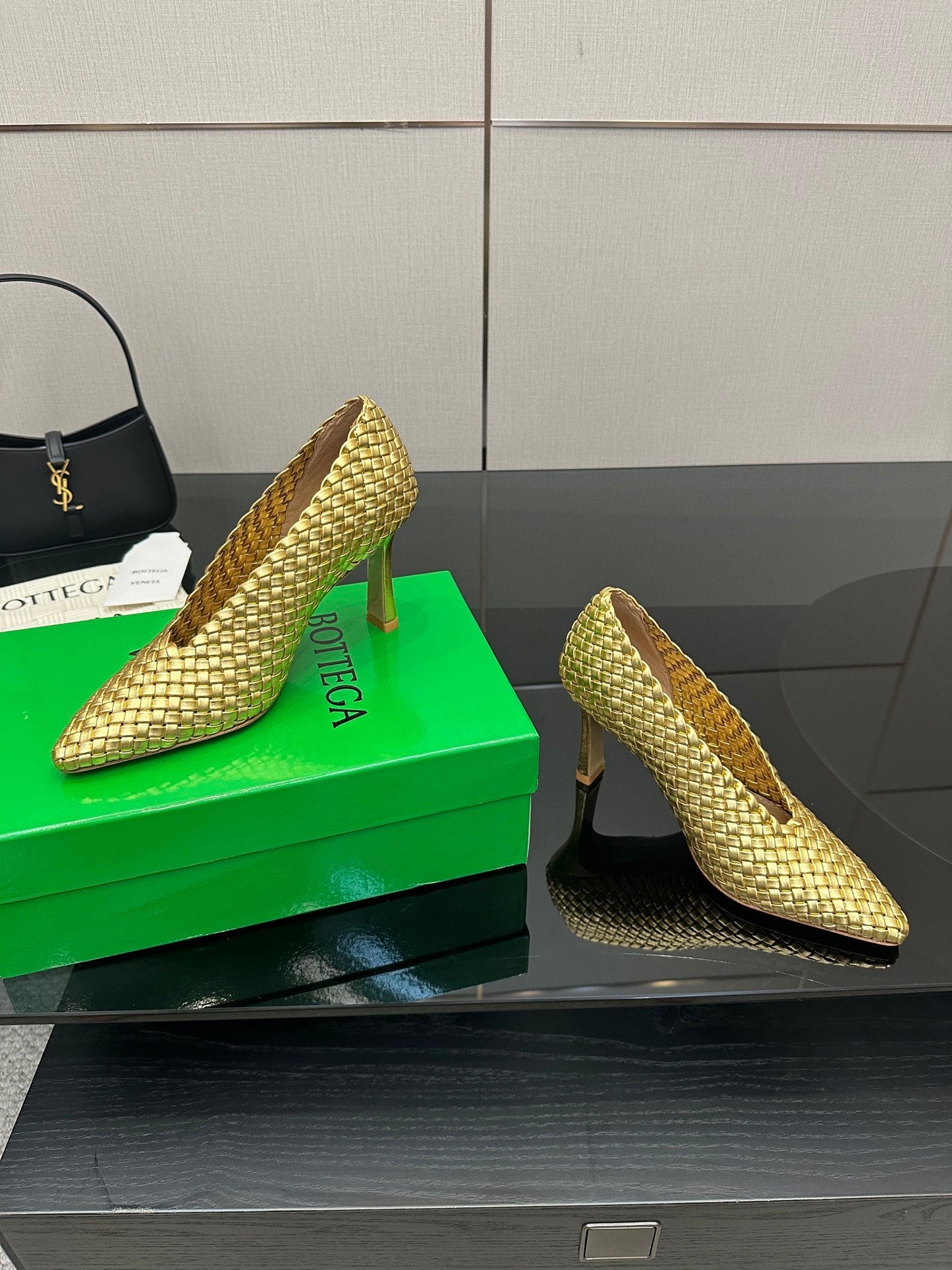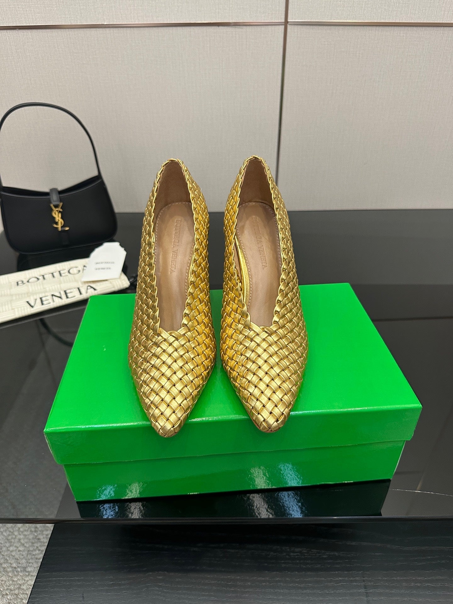 - Material: Intreccio leather