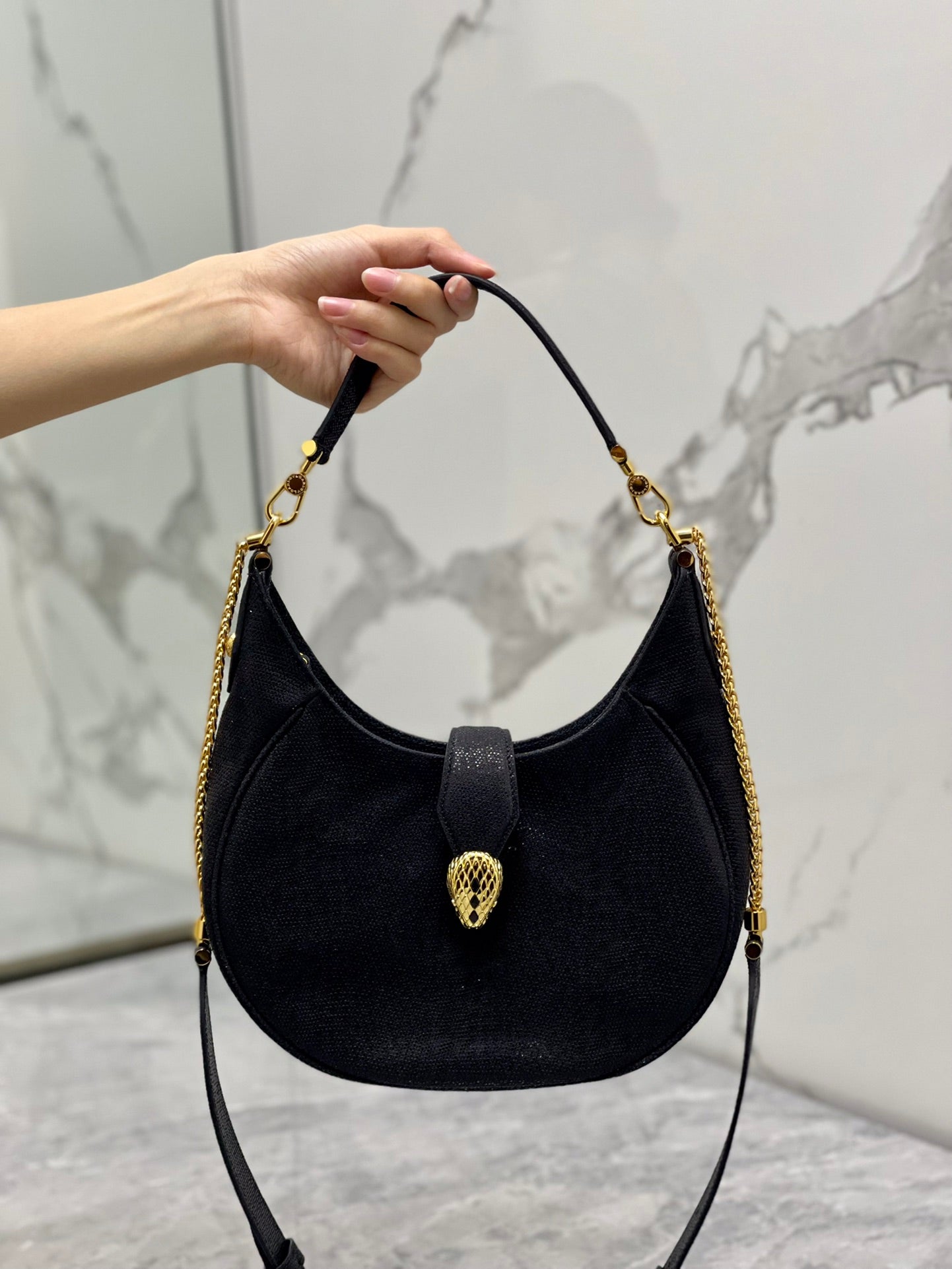 BVL Serpenti Ellipse Crossbody Bag 25cm Black Lambskin GHW 188344