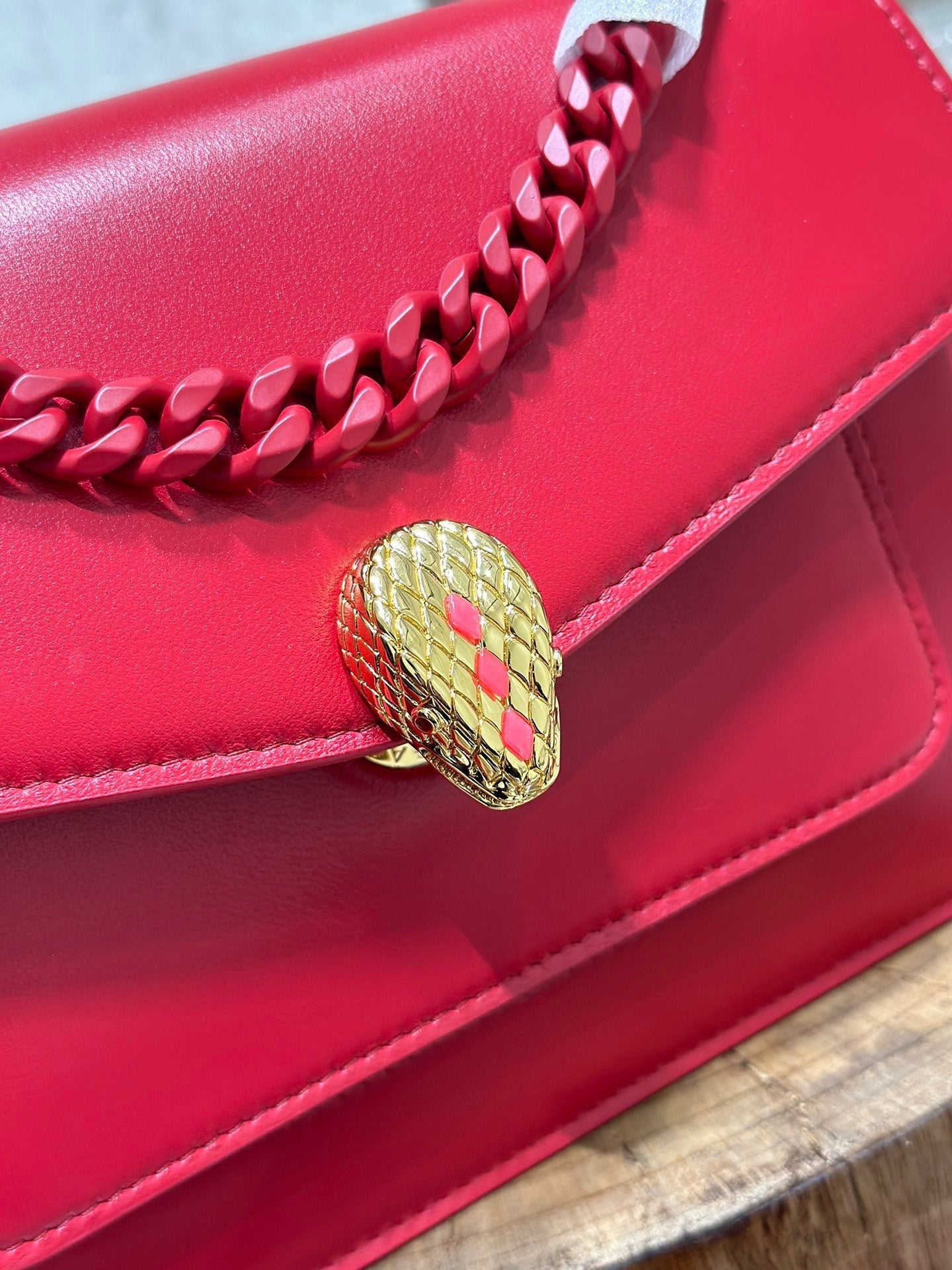 - Serpenti Head: Light Gold-Plated Brass, Red