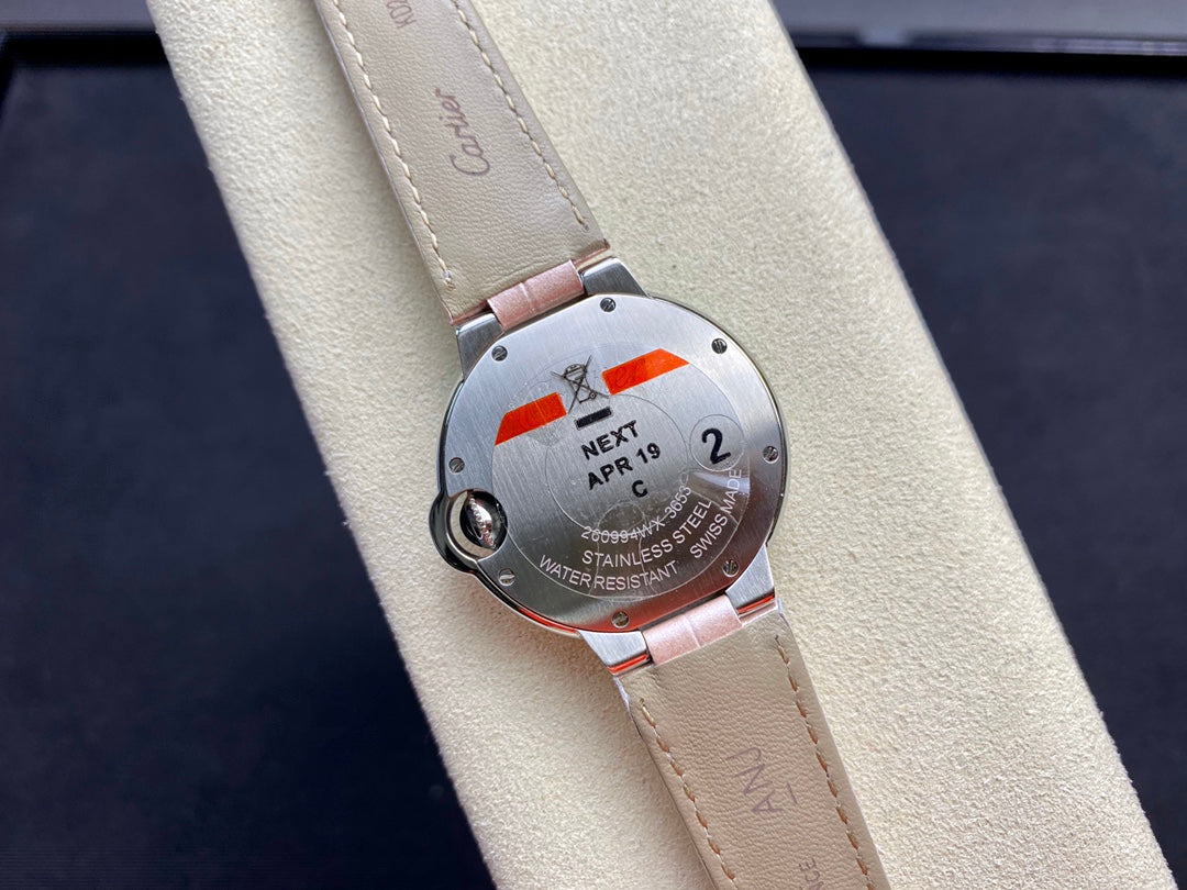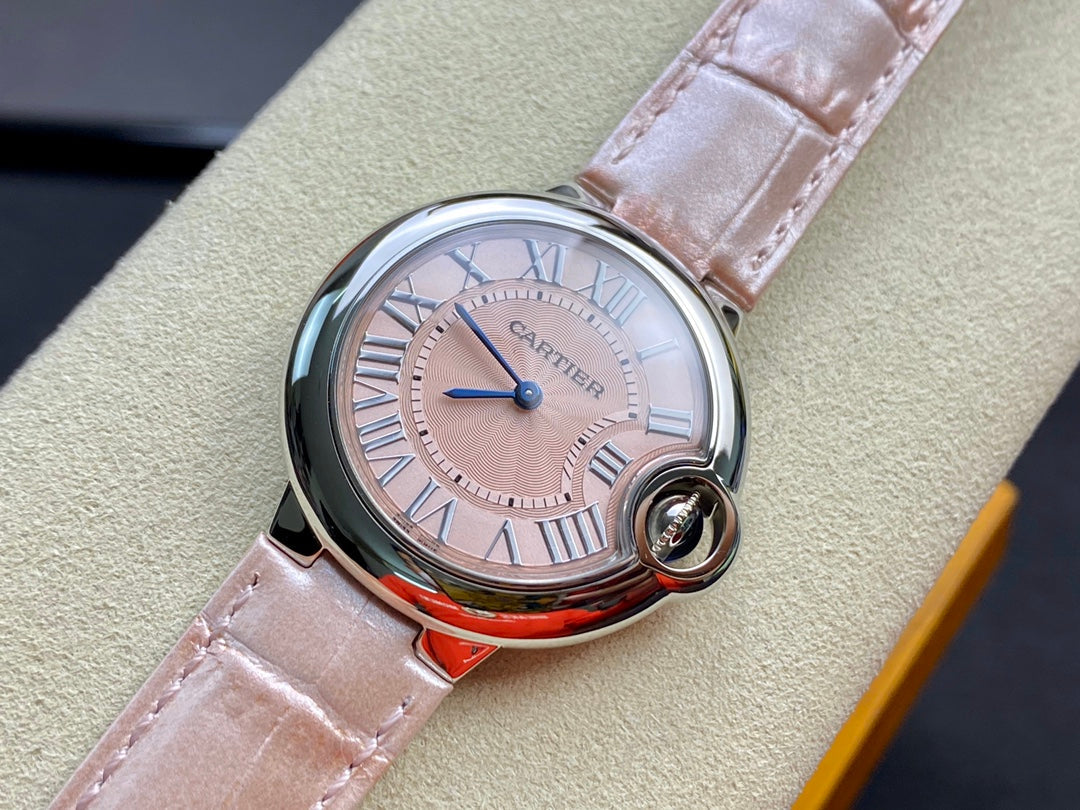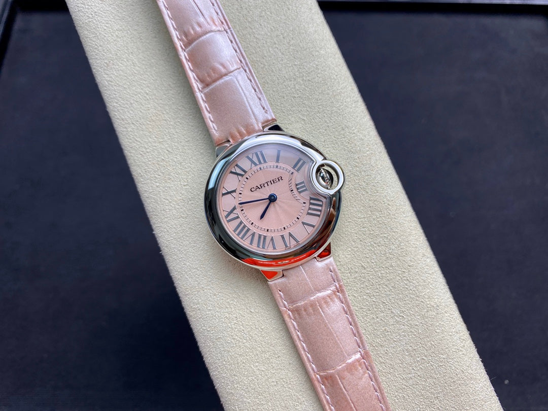 Cartier Balloon 33mm Silver Pink Leather
