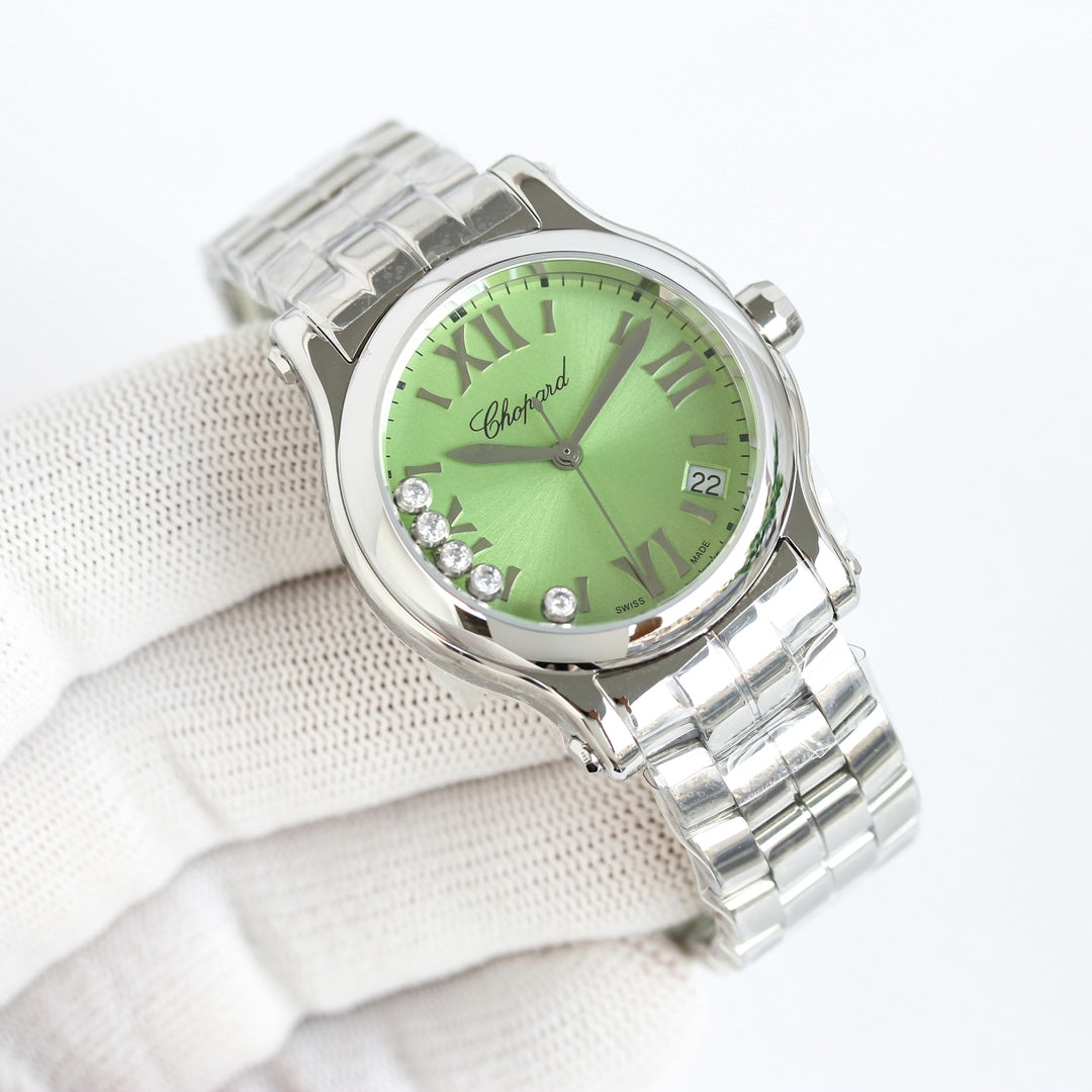 Happy Diamond Silver Green Dial