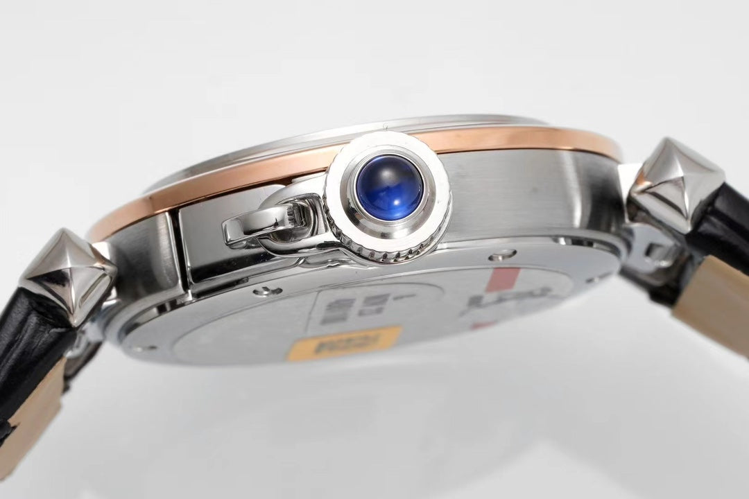 pasha 30mm quartz pink gold white dial black leather