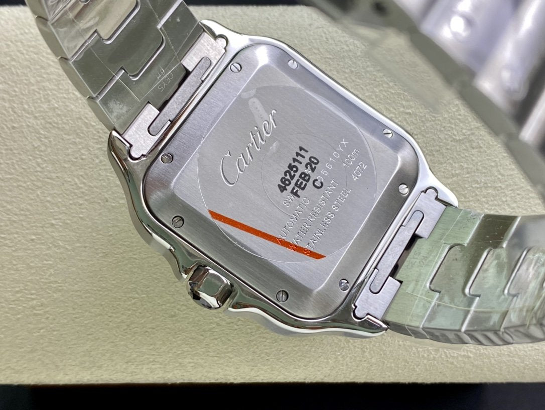 SANTOS DE CARTIE LARGE STEEL CASE BLACK BEZEL WHITE DIAL