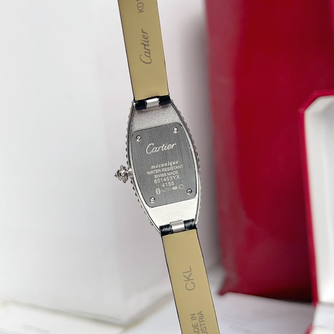 Baignoire 28mm Silver Diamond Case Black Silk Leather