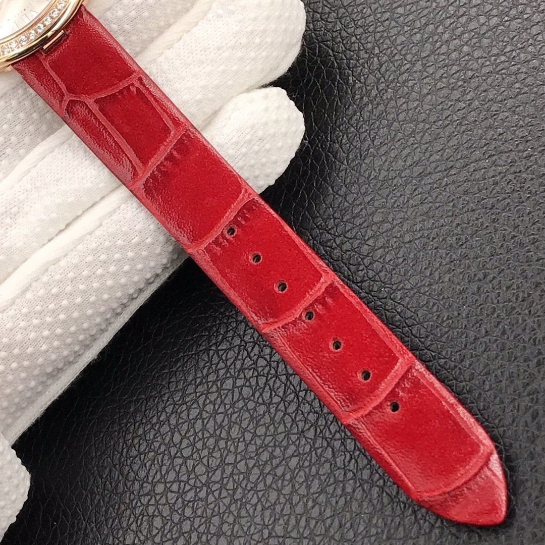 BALLON BLEU 33MM ROSE GOLD CASE DIAMOND BEZEL RED LEATHER