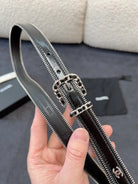BELT 20MM IN BLACK CALFSKIN WITH INTERWOVEN CHAIN BUCKLE ZIPPER IN TRIM