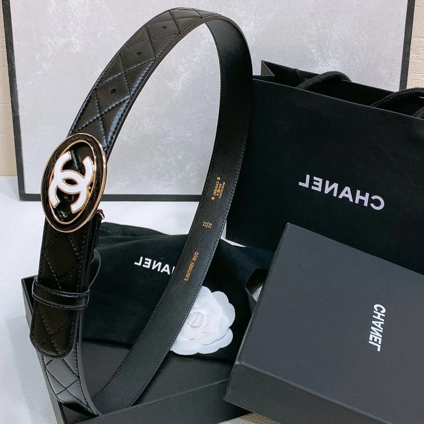 CC 30MM BELT IN BLACK EMBROIDERED CALFSKIN WHITE MIX BLACK METAL HARDWARE