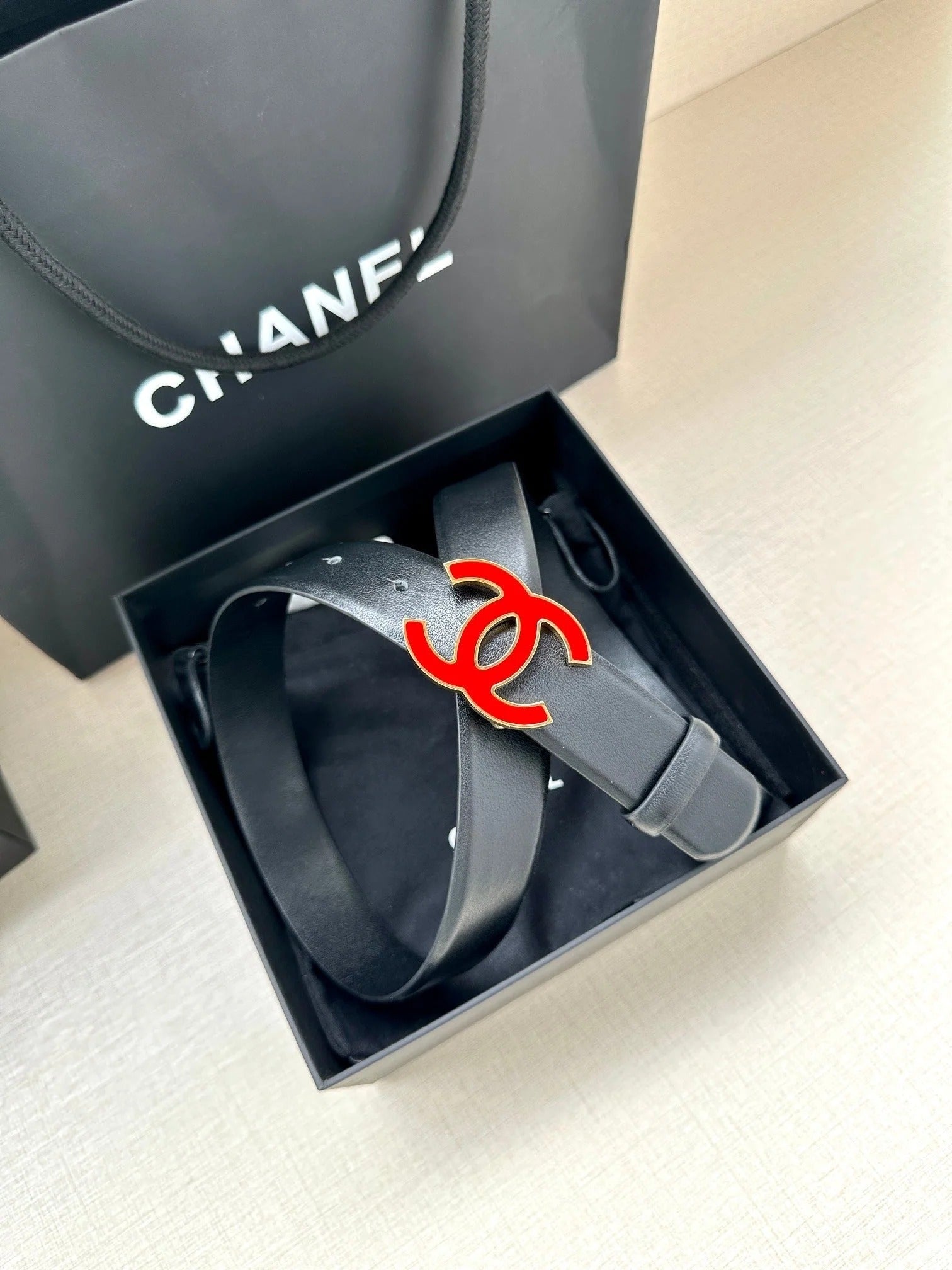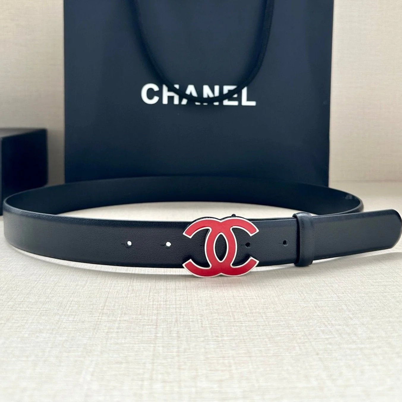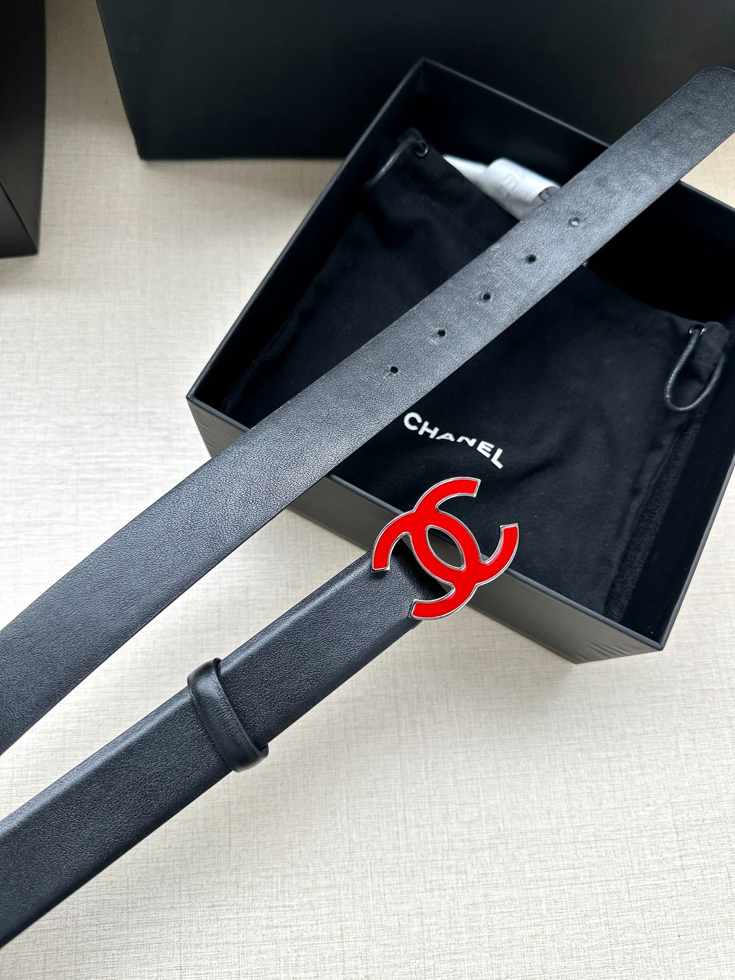 CC 30MM BELT IN BLACK SMOOTH CALFSKIN WITH RED METAL LOGO