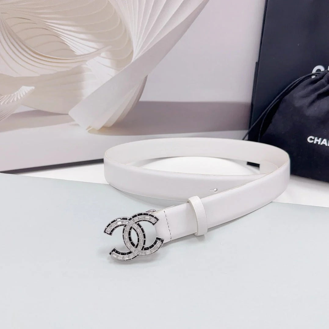 CC 30MM BELT IN WHITE CALFSKIN METAL HARDWARE