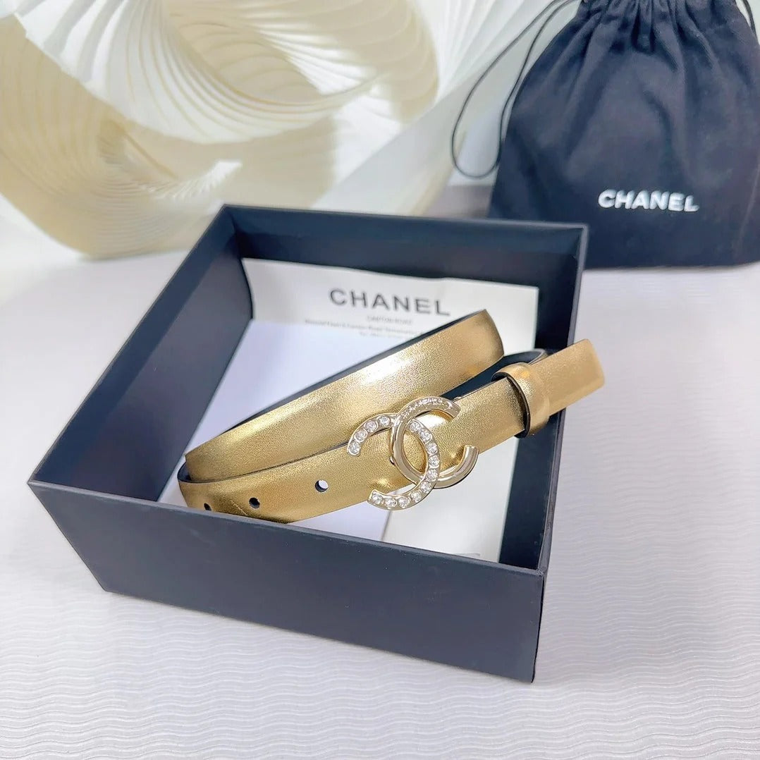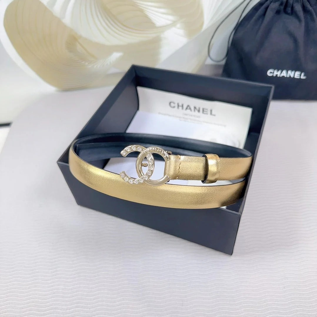 CC BELT 20 MM IN GOLD SMOOTH CALFSKIN GOLD HARDWARE ATTACH RHINSTONE