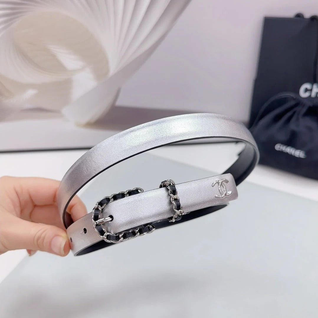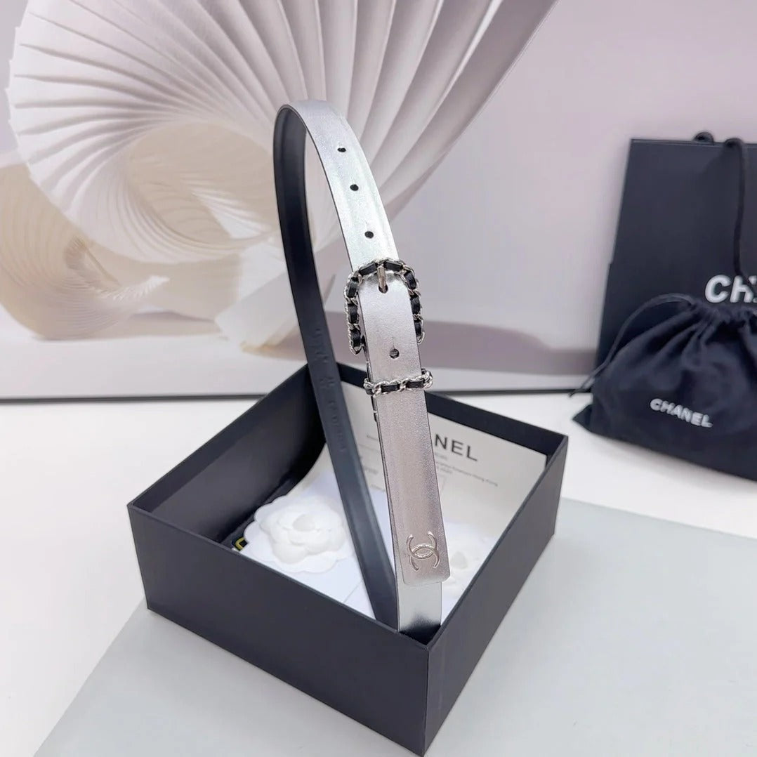 CC BELT 20 MM IN SILVER MIX BLACK CALFSKIN SILVER HARDWARE