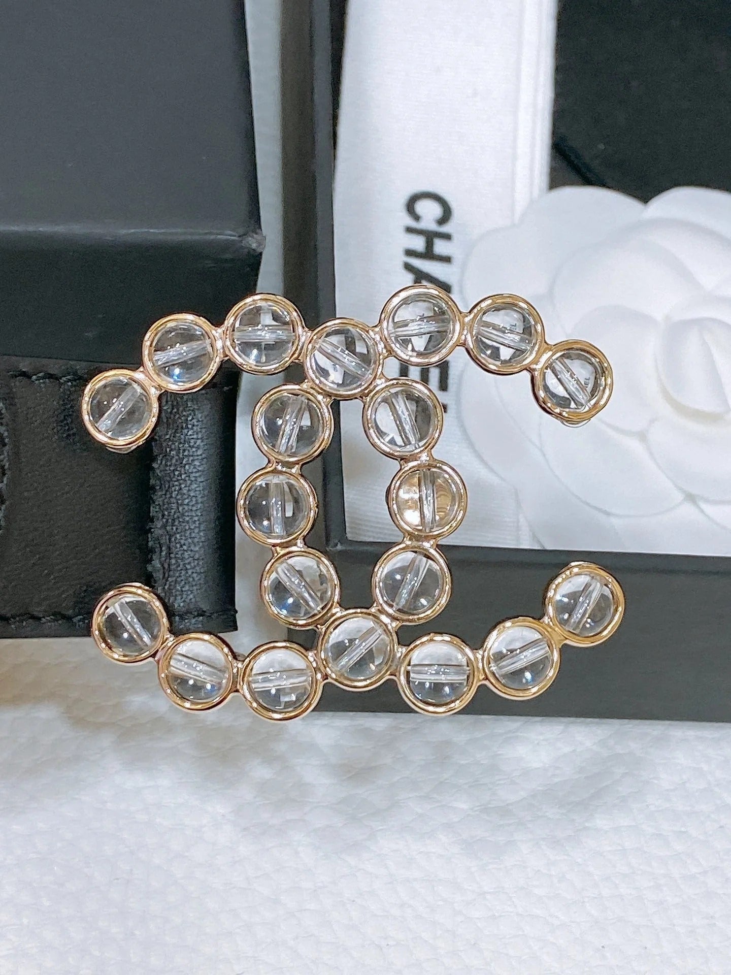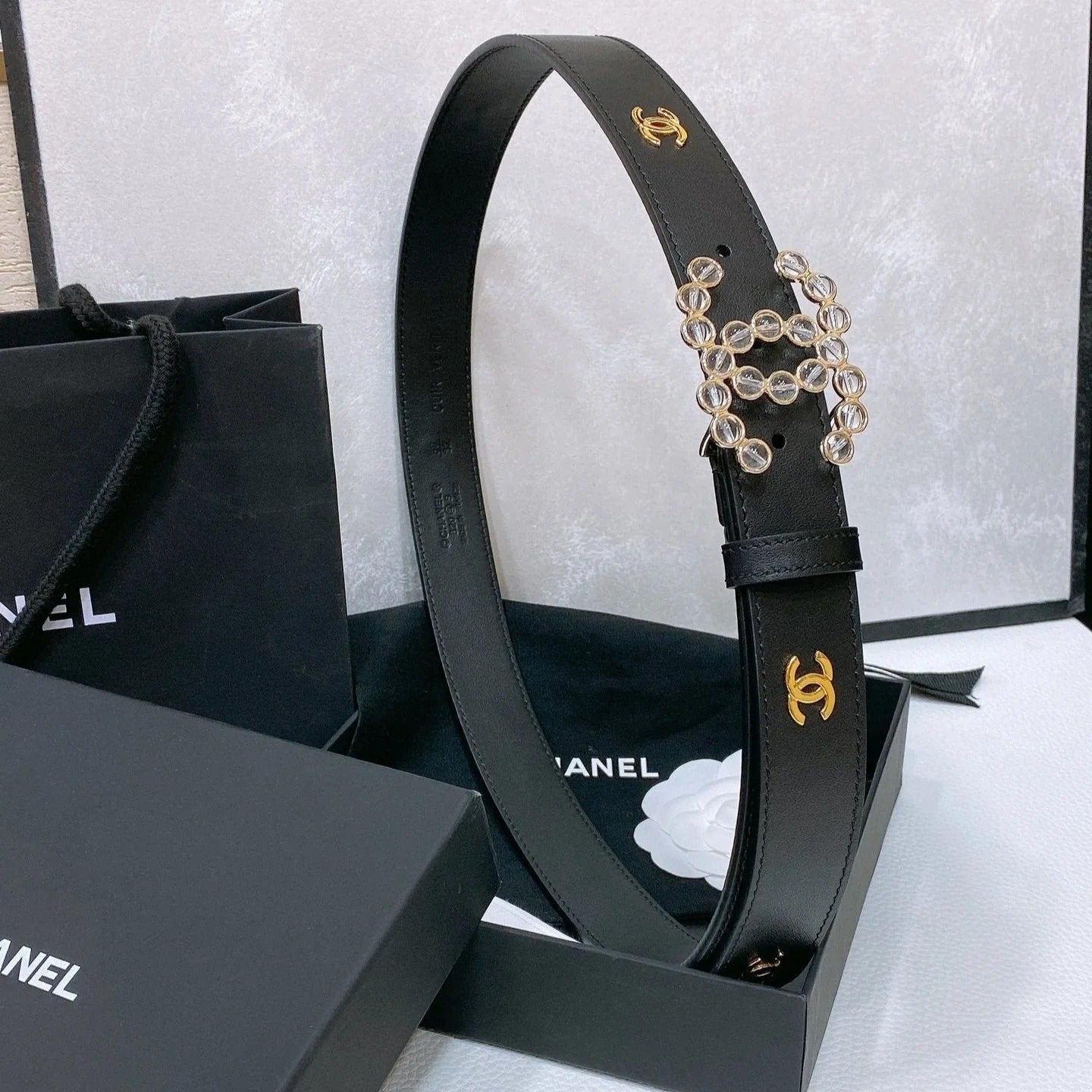 CC BELT 30 MM IN BLACK CALFSKIN PEARL LOGO WITH GOLD HARDWARE