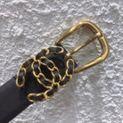 CC BELT 20MM BUCKLE GOLD BLACK LEATHER BLACK