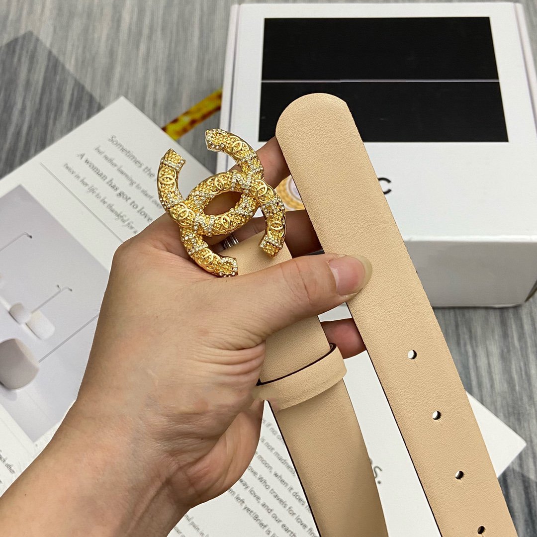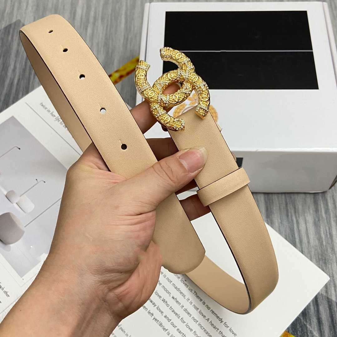CC BELT 30MM BUCKLE GOLD DIAMOND LEATHER BEIGE
