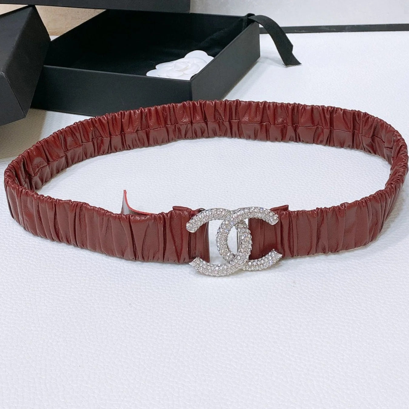 CC ELASTIC BELT 30MM IN WINE RED CALFSKIN SILVER HARDWARE WITH RHINSTONES