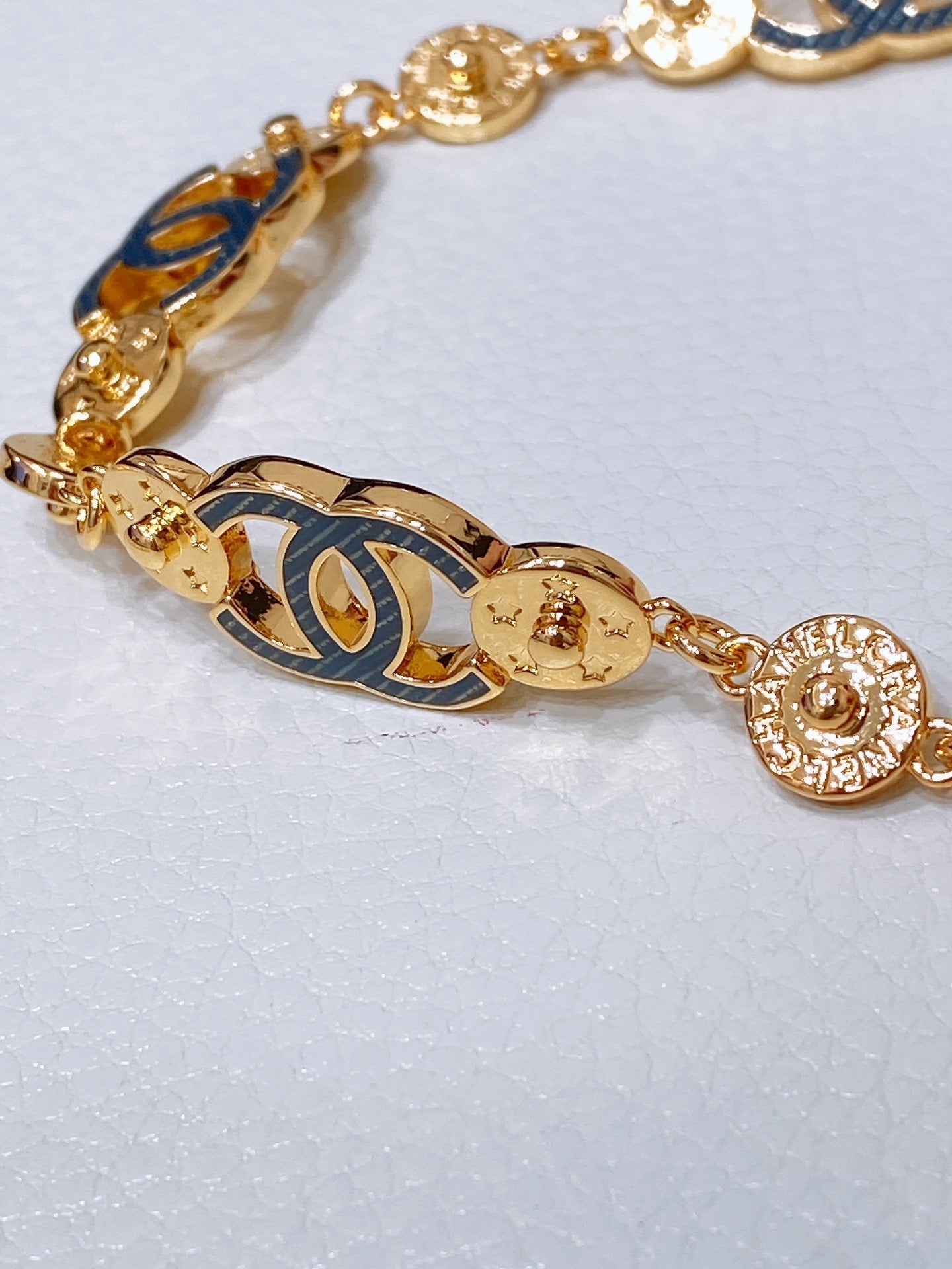 • Buckle in permabrass plated metal.