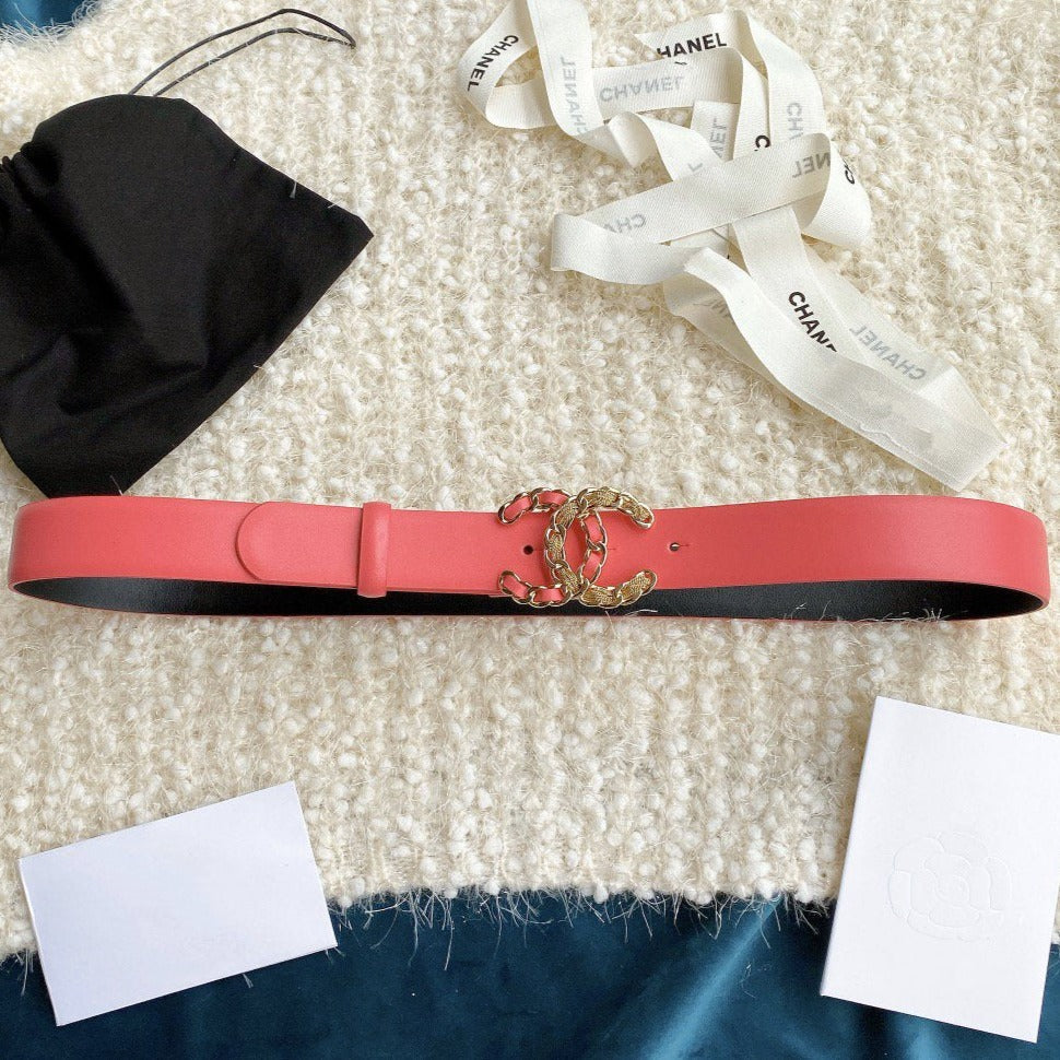 CC WOMEN'S BELT 3.0CM BUCKLE MULTICOLOR LEATHER DARK PINK