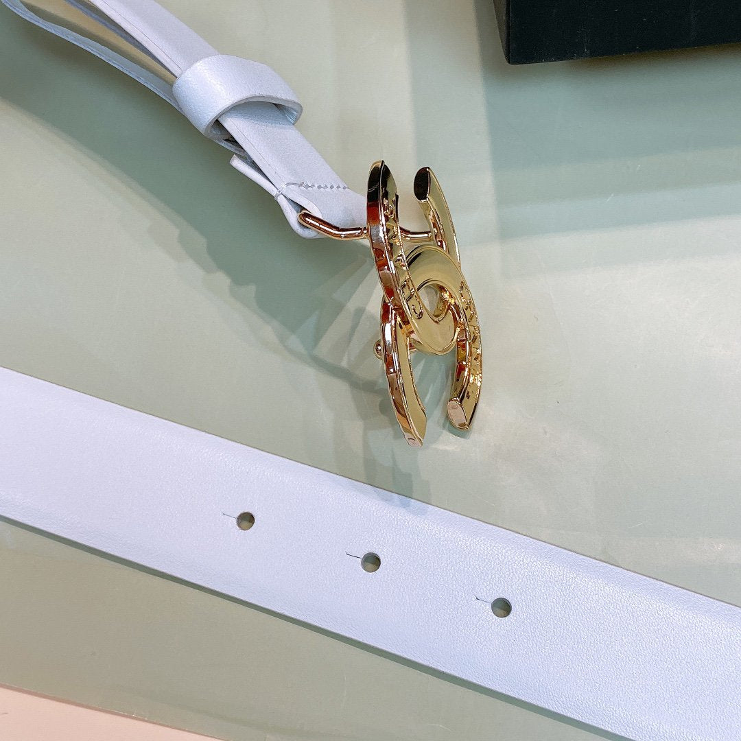 CC WOMEN'S BELT 3.0CM PINK GOLD BUCKLE LEATHER WHITE