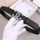 CC WOMEN'S BELT 30MM BUCKLE STAR DIAMOND LEATHER BLACK