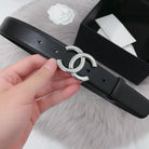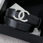 CC WOMEN'S BELT 30MM LEATHER BLACK BUCKLE SILVER CONVEX