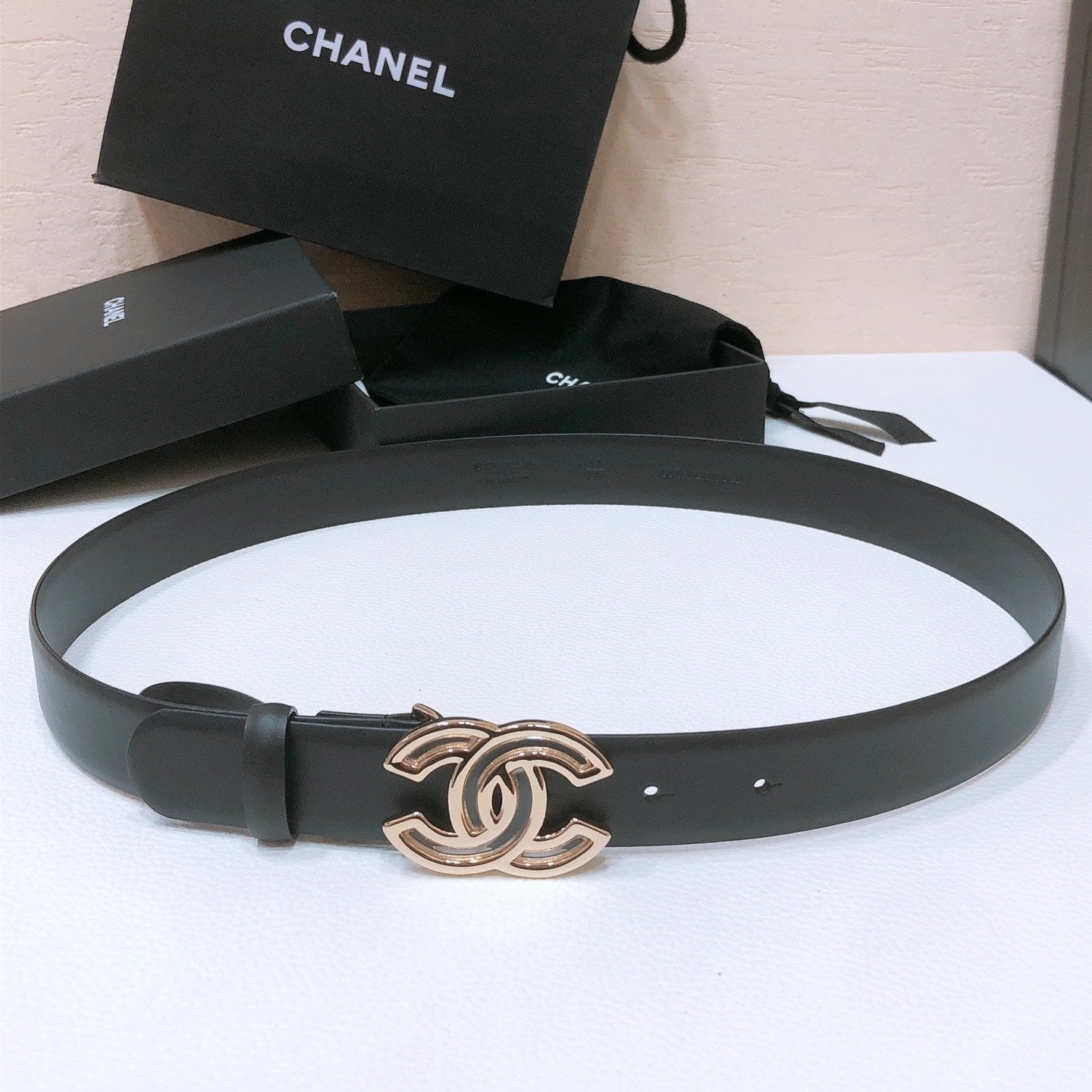 CHANEL BELT 3CM IN BLACK LAMBSKIN WITH GOLD HARDWARE