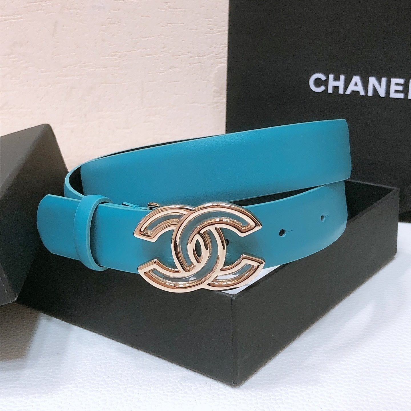 CHANEL BELT 3CM IN DODGER BLUE AND BLACK LAMBSKIN WITH GOLD HARDWARE
