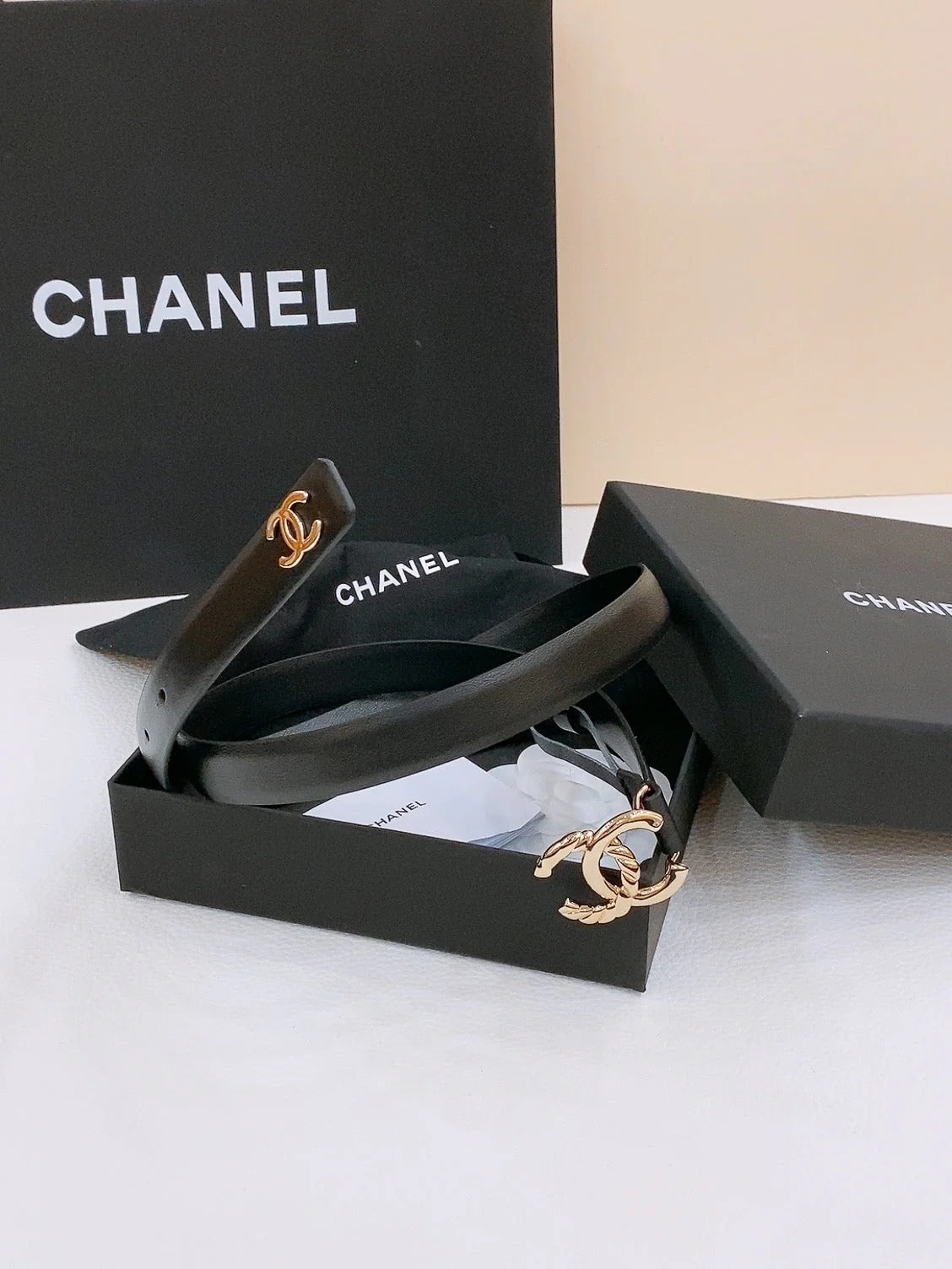 DOUBLE C BELT 20MM IN BLACK CALFSKIN WITH GOLD-TONE CHAIN INTERWOVEN BUCKLE