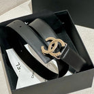 DOUBLE C BELT 30MM IN BLACK CALFSKIN WITH GOLD HARDWARE AND CARO STITCHING