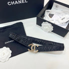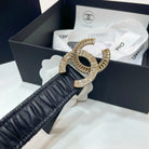 DOUBLE C ELASTIC BELT 30MM IN BLACK CALFSKIN GOLD CRYSTAL EMBELLISHED BUCKLE