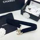 DOUBLE CC 30MM STRETCH BELT IN BLACK SUEDUE WITH GOLD CHAIN BUCKLE CRYSTAL DETAIL