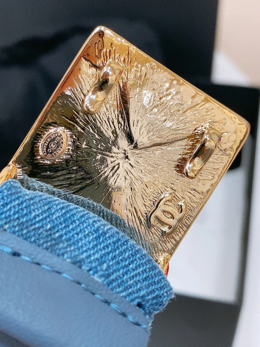 ELASTIC BELT 30MM IN BLUE DENIM WITH SQUARE BUCKLE EMBOSSED LOGO