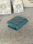 CD Caro 11cm Compact Wallet Shiny Teal Calfskin