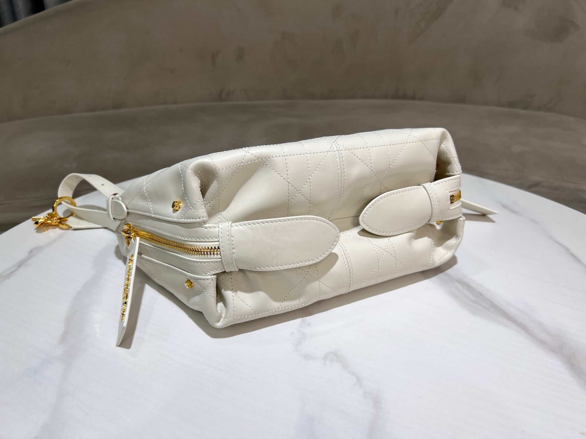 CD Jacquard Hobo Bag 23 With Chain White Calfskin