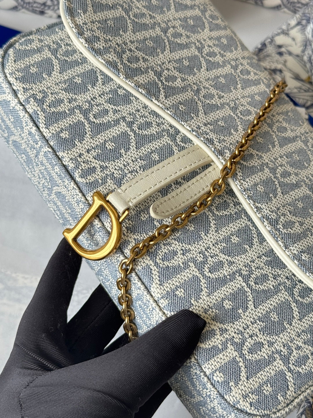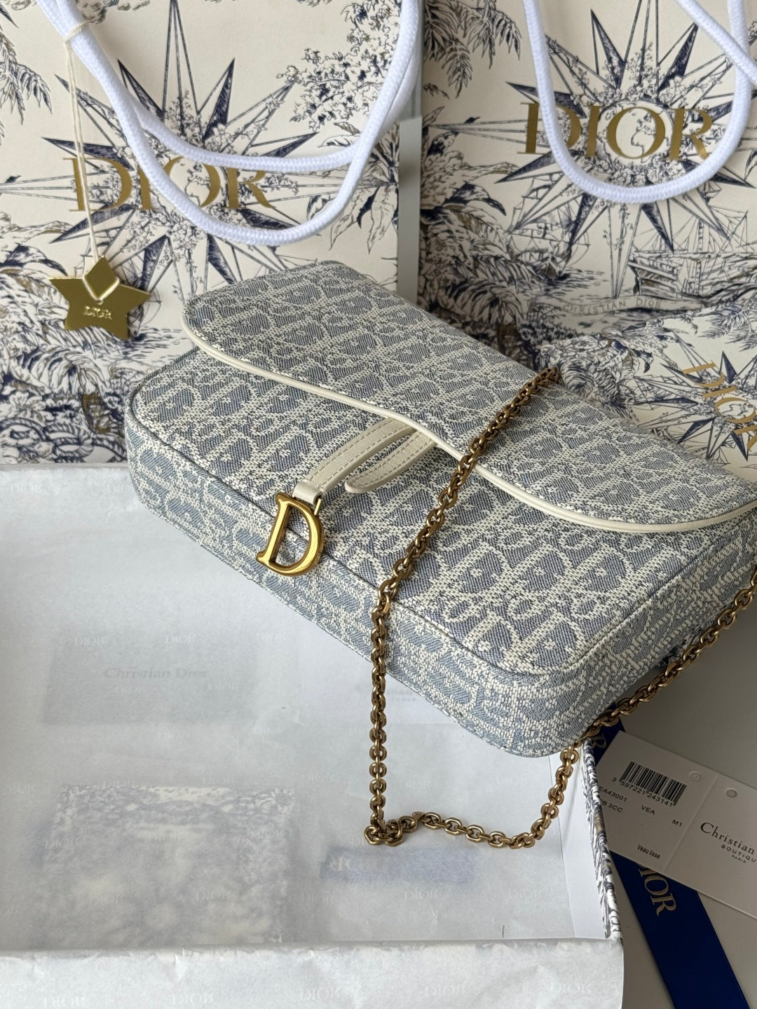 CD Medium Saddle Pouch with Chain 21.5cm White Grey Jacquard Cowhide GHW