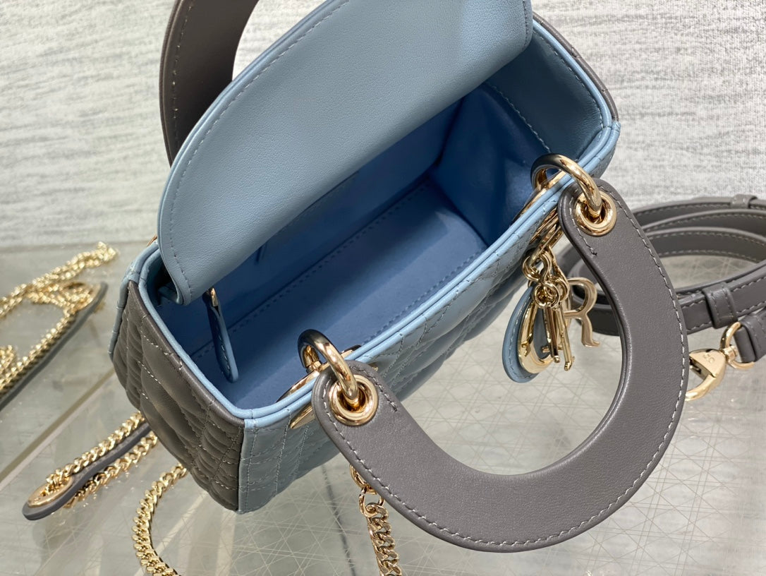 Lady Bag 17cm Celeste Blue Grey Lambksin