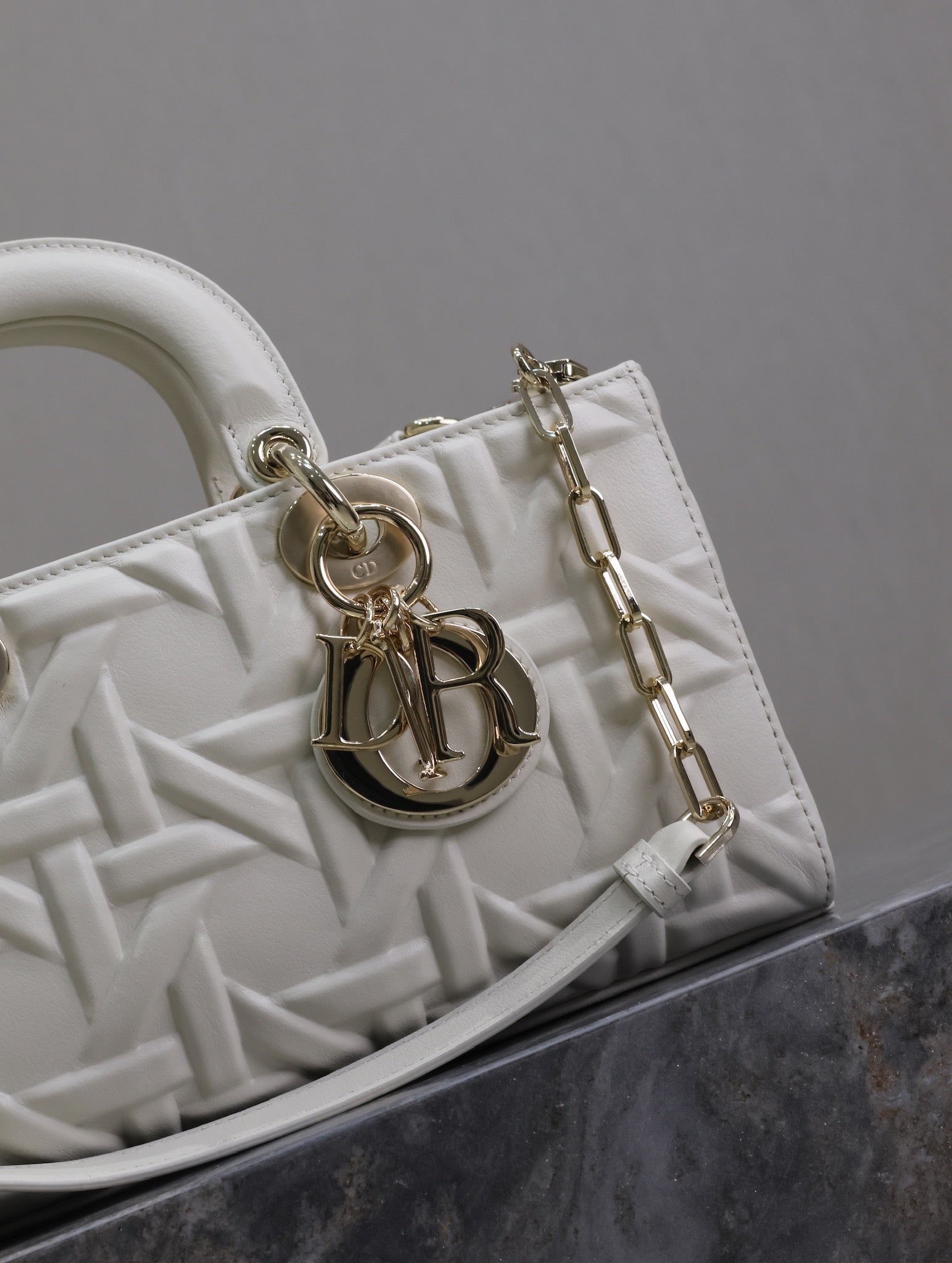 Lady D-Joy Bag 26 White Graphic Lambskin