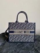 MEDIUM BOOK TOTE 36 BLUE OBLIQUE EMBROIDERY