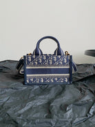 MINI BOOK TOTE 21 BLUE OBLIQUE EMBROIDERY